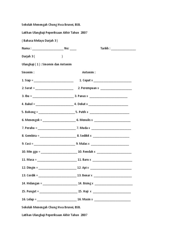 Sinonim Dan Antonim Bahasa Melayu / Blog pendidikan dan pelajaran :